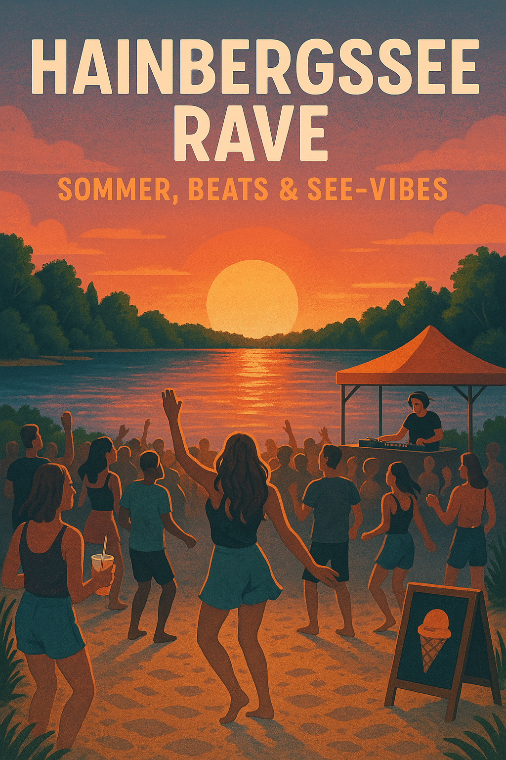 Erlebe elektronische Musik unter freiem Himmel – direkt am wunderschönen Hainbergsee! Bei chilliger Atmosphäre, tanzbaren Beats und Sonnenuntergang über dem Wasser feiern wir den Sommer. Freu dich auf DJs, leckere Snacks, kühle Drinks und eine unvergessliche Open-Air-Experience mitten in der Natur.Tanz barfuß im Sand – der Hainbergsee Rave wartet auf dich!
