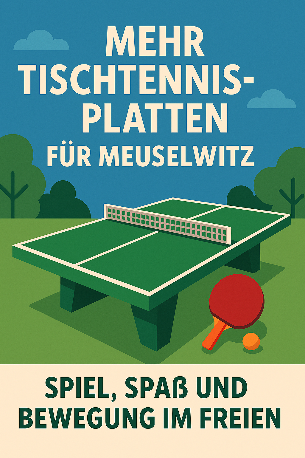 Ob schnelles Match nach der Schule, gemeinsames Spiel mit Freunden oder sportliche Bewegung an der frischen Luft – Tischtennis verbindet. Mit neuen, frei zugänglichen Tischtennisplatten im Stadtgebiet soll Meuselwitz noch aktiver und lebendiger werden. Ziel ist es, mehr Treffpunkte im öffentlichen Raum zu schaffen, an denen Kinder, Jugendliche und Erwachsene zusammenkommen, sich sportlich betätigen und ganz nebenbei Gemeinschaft erleben. Robuste Outdoor-Platten, gut erreichbar in Parks und Wohngebieten, laden zu spontanen Duellen oder kleinen Turnieren ein – ganz ohne Vereinsbindung. Tischtennis für alle – Meuselwitz wird bewegter!