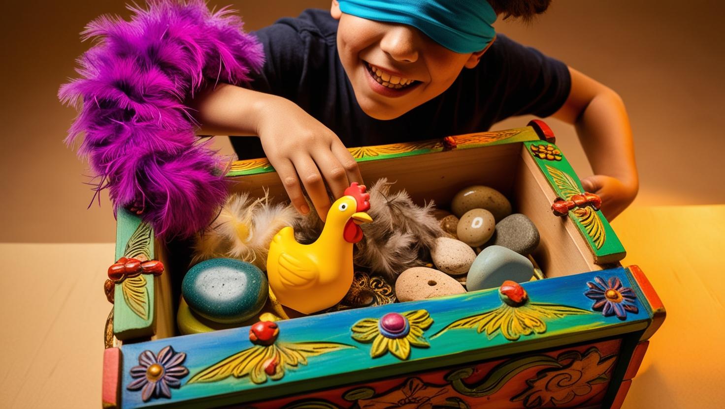 Eine spannende Sinneserfahrung voller Überraschungen! Wer traut sich, in geheimnisvolle Boxen zu greifen und verrückte, witzige Gegenstände zu ertasten? Mutige und Neugierige sind gefragt – Spaß ist garantiert! Wenn du Lust auf Nervenkitzel und Lachen hast, dann stimm für meine Idee!
