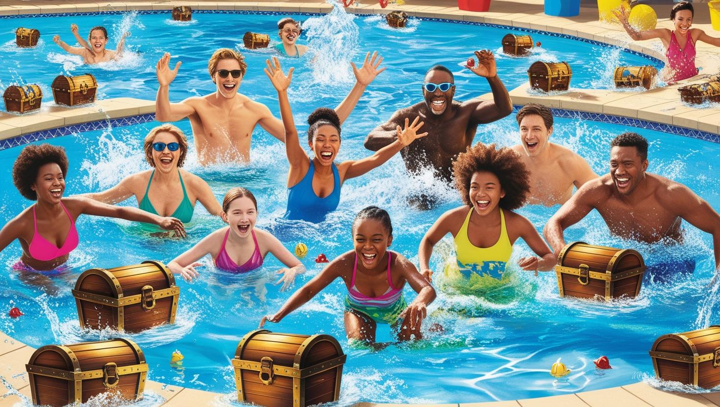 Ein actiongeladener Wasserspaß für alle Abenteurer! Im Pool sind kleine Schätze versteckt – wer findet die meisten? Ob Tauchen, Suchen oder cleveres Teamwork: Hier zählt Geschick, Mut und ein bisschen Glück. Dazu coole Musik, Sonne und jede Menge Lacher. Der perfekte Mix aus Erfrischung und Challenge! Wenn du Bock auf Sommer, Spaß und Schatzjagd hast – dann gib deiner Stimme den Sprung ins Wasser!